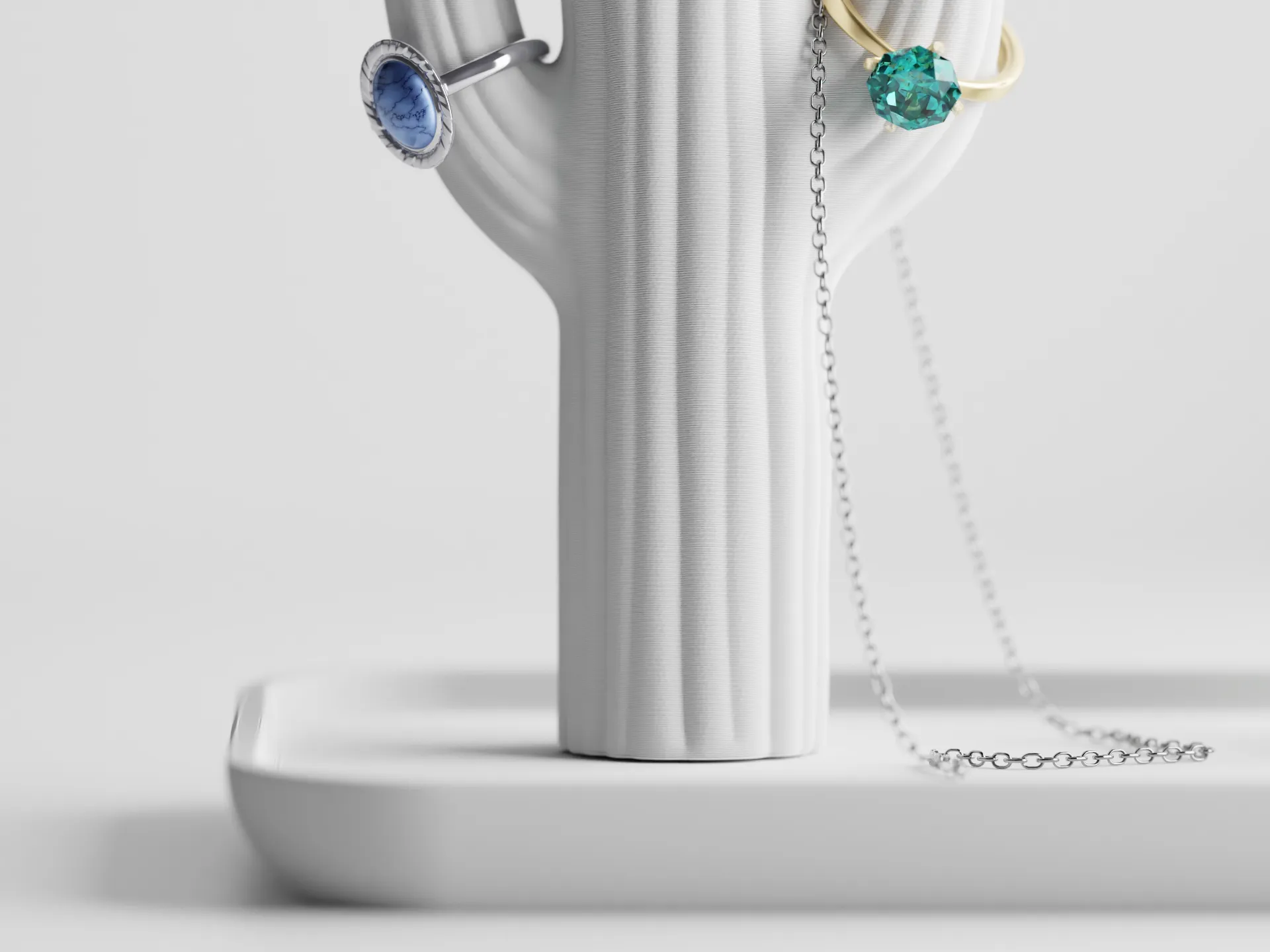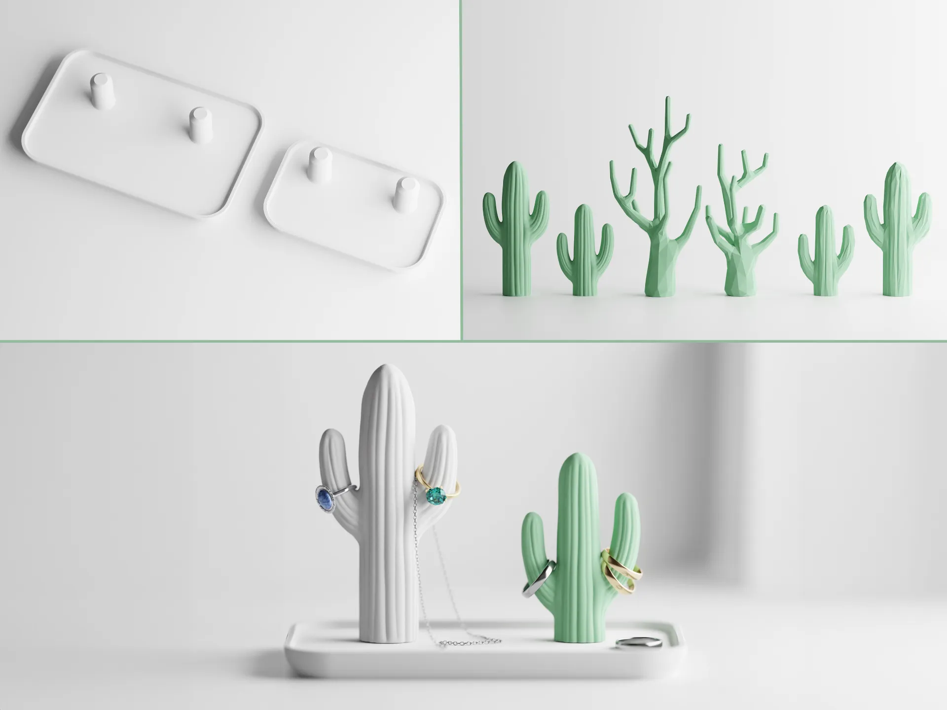 Organize your favorite accessories with a playful twist using this 3D-printed Cactus Jewelry Holder. Designed to blend function and style, each cactus arm offers the perfect spot to store your rings, bracelets, and necklaces. The modular base system lets you mix and match different cactus styles, while the smooth tray below keeps smaller items neatly in place. Whether on your vanity, nightstand, or dresser, this minimalist desert-themed organizer adds charm to any space.
