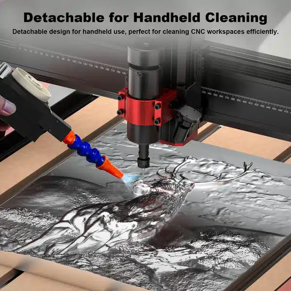 Beyond cooling, this kit doubles as a practical workshop cleaning tool. Its detachable design allows users to remove the blower and use it as a handheld air cleaner, making it easy to clear dust, chips, and debris from CNC worktables and surrounding areas. This multifunctional feature enhances workspace efficiency while reducing the need for additional cleaning equipment, making it especially useful for compact home workshops.