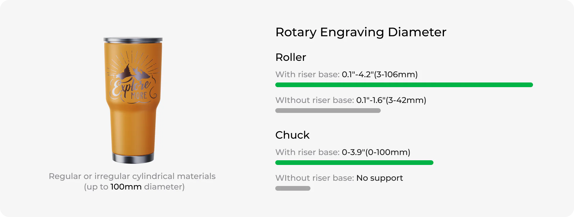 xTool S1 Riser Base increases the workspace height from 1.7″ to 5.3″.